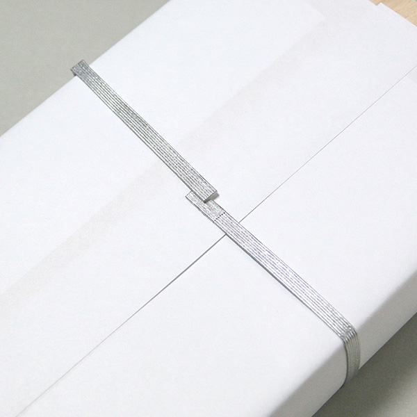 双銀5本の水引。後ろをテープで止めるタイプ。